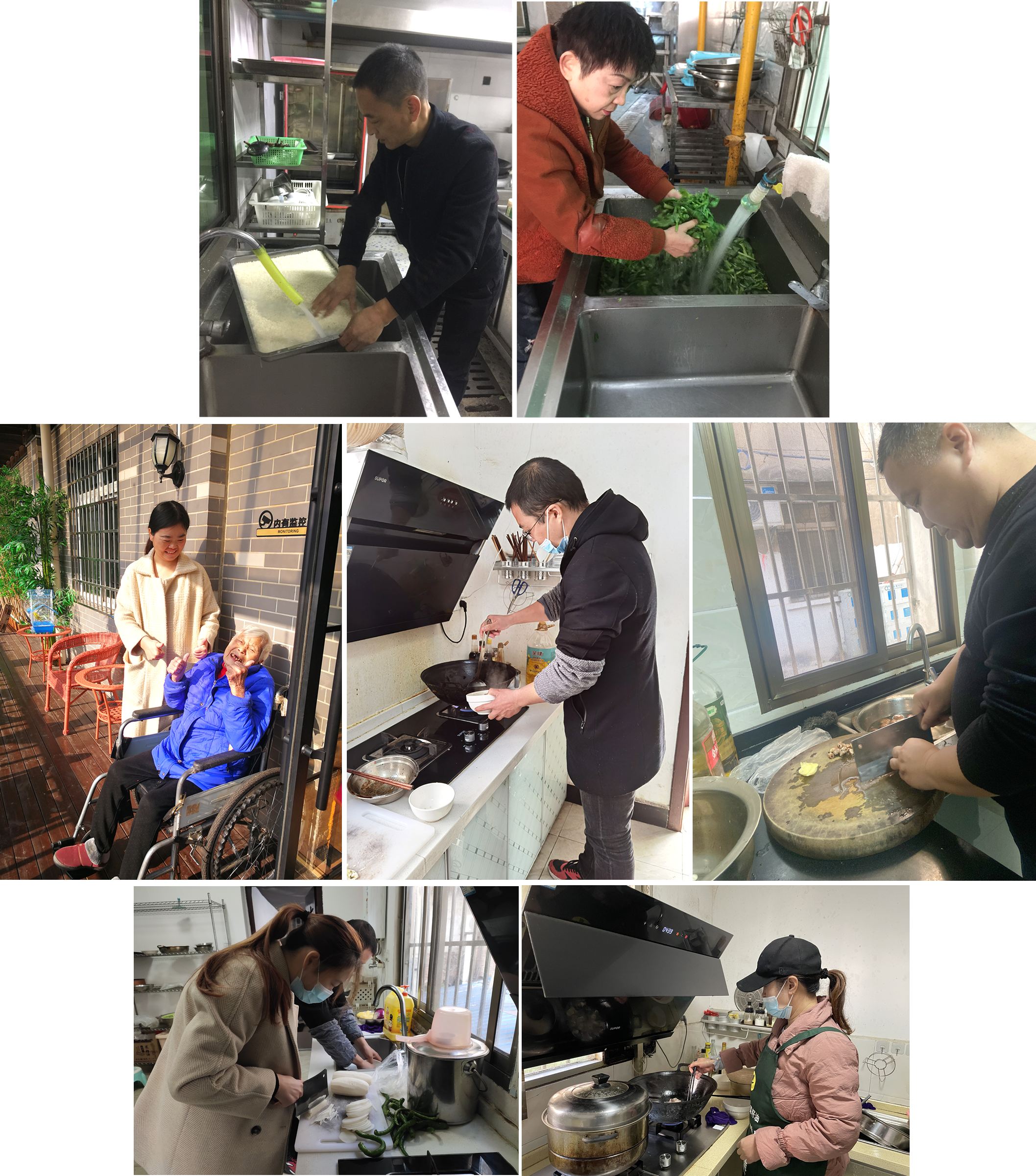 對(duì)接清楚后,每位同事都有條不紊的開啟了工作...廚房幫廚...搞衛(wèi)生...帶爺爺奶奶們出去曬太陽...更有同事大顯身手,為爺爺奶奶們制作可口的養(yǎng)生餐。(雖然可能沒有護(hù)理員姐姐們做的美味,但是滿滿的誠意在)