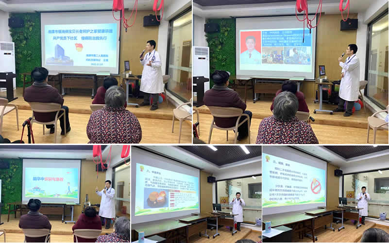 1月7日上午,銀海倆寶貝醫(yī)聯(lián)體湘潭市第二人民醫(yī)院神經(jīng)內(nèi)科主任醫(yī)師,在窯灣康養(yǎng)院內(nèi)給爺爺奶奶們進(jìn)行了一場(chǎng)——“腦卒中識(shí)別與急救”健康知識(shí)講座及課后的巡診活動(dòng)。