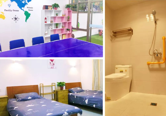 有別于傳統(tǒng)養(yǎng)老機(jī)構(gòu),進(jìn)入龍子巷長(zhǎng)者照護(hù)中心,進(jìn)入眼簾的是綠色、生氣勃勃的接待大廳,長(zhǎng)者活動(dòng)室、乒乓球臺(tái)、桌游、圖書(shū)閱覽、多功能廳、餐廳等一應(yīng)俱全。中心提供長(zhǎng)住托管、日間照料、精神關(guān)懷、助餐服務(wù)、健康指導(dǎo)、音樂(lè)療法等等服務(wù)。