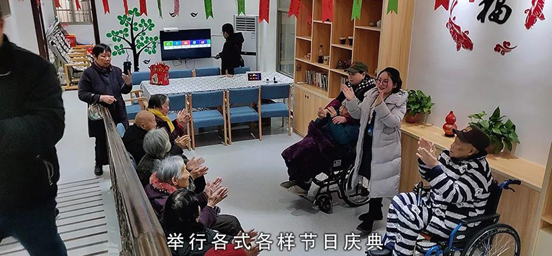 每當(dāng)有老人年滿90歲、95歲、100歲時,倆寶貝會舉行長壽祝賀會,邀請老人家屬一起熱烈慶祝。