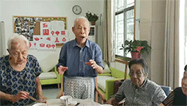 活動(dòng)現(xiàn)場(chǎng),各點(diǎn)的爺爺奶奶們引吭高歌,揮舞著小紅旗,唱著《歌唱祖國(guó)》,互相揮手致意說(shuō)著節(jié)日快樂(lè),他們雖然不在一個(gè)養(yǎng)老點(diǎn)上生活,但仿佛都像是熟悉的朋友,我想,這就是連鎖品牌的魅力吧~