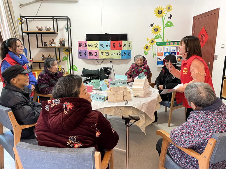 經(jīng)過一系列的比拼過后,每位爺爺奶奶都收獲到了不等的幸福幣,結(jié)合近期的活動(dòng)出勤、興趣小組參與(遛鳥、養(yǎng)魚、澆花、擇菜等)、以及各類好人好事,爺爺奶奶們通過自己辛勤的勞動(dòng)都拿到了相應(yīng)的“薪酬”。拿到工資的他們,認(rèn)真挑選著自己需要的物品,集市上人群熙攘,熱鬧非凡。