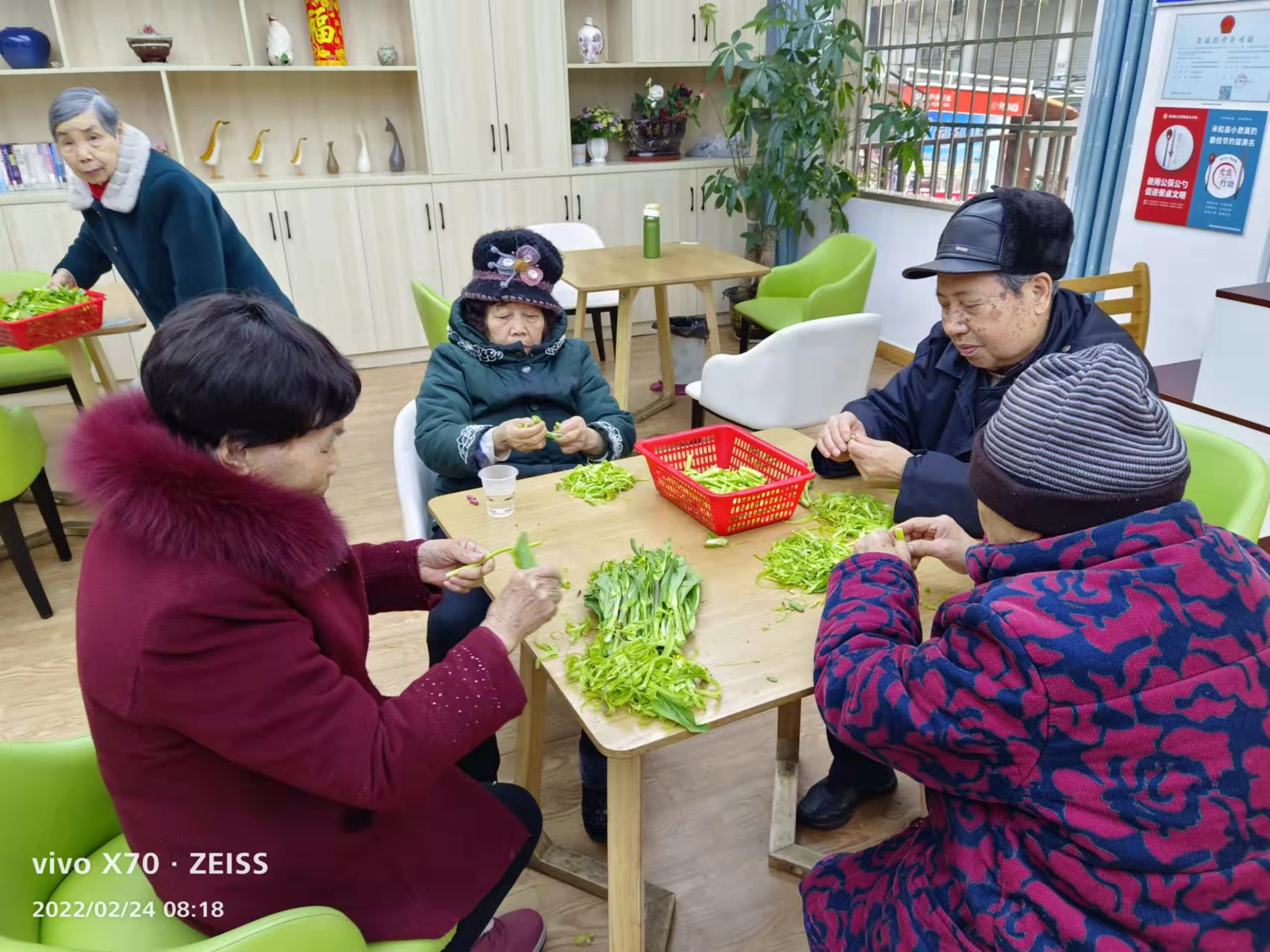 銀海老人幫食堂擇菜,學(xué)雷鋒做紅事已經(jīng)成為常態(tài),吃罷早飯,手腳靈便的老人都自覺的圍在一起擇菜。