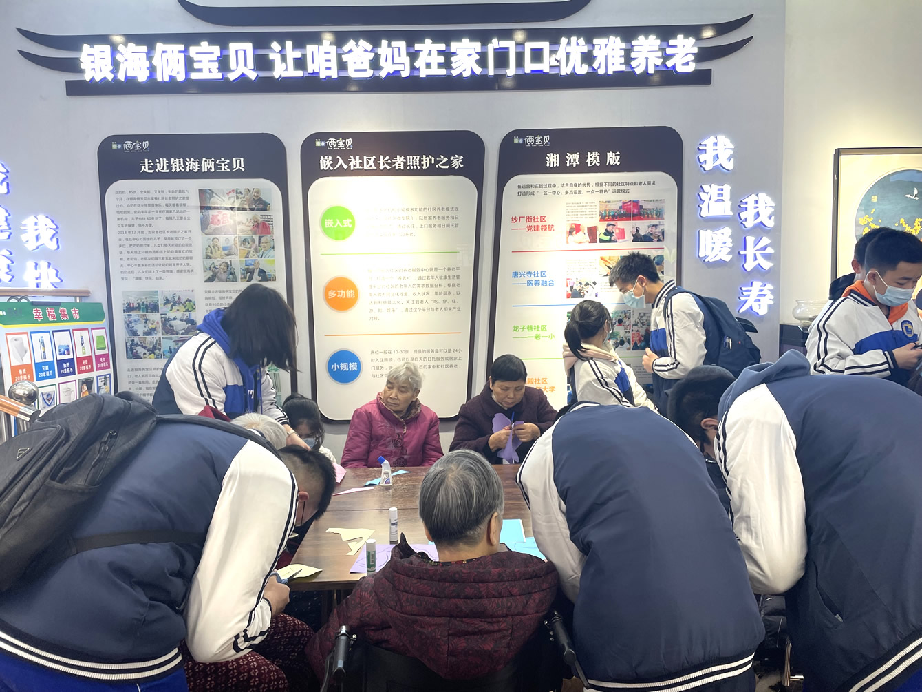 奉獻愛心,收獲希望。在3月5日這個特殊而又有紀(jì)念意義的日子里,湘潭市湘鋼一中初三級1907班50余名學(xué)生志愿者來到銀海倆寶貝窯灣康養(yǎng)中心內(nèi),為院內(nèi)的爺爺奶奶們送去了牛奶、水果、蛋糕等物品以及滿滿的祝福!