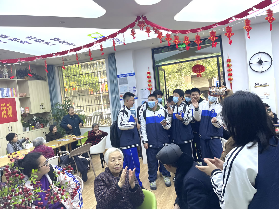 當(dāng)爺爺奶奶們看到一張張青春充滿活力的臉龐圍繞在他們周圍,心中也不由得輕快了許多。有同學(xué)自告奮勇,提出為爺爺奶奶表演節(jié)目,于是一幕幕精彩的畫面,輪番上演。熱情洋溢的拉丁舞,朝氣蓬勃的紅歌合唱,青春的力量無不感染著爺爺奶奶們,那一刻他們的激情也被點燃了,他們忘記了吃飯的時間,甚至不覺得身體疲憊,最后在依依不舍的掌聲中歡送走了這群活力滿滿的孩子們。