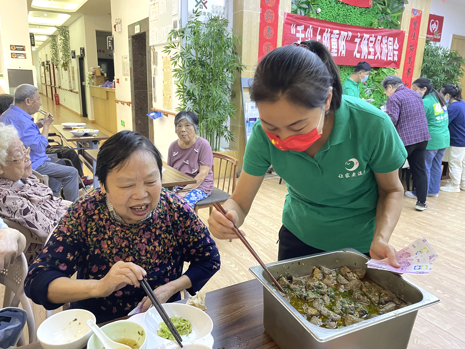 金秋送爽,丹桂飄香。一年一度的國慶、重陽一不小心撞了個滿懷!銀海倆寶貝為豐富入住長者的精神文化生活,特在近日舉辦了為善養(yǎng)老幸福銀行換購活動和“舌尖上的重陽”美食園游會活動。