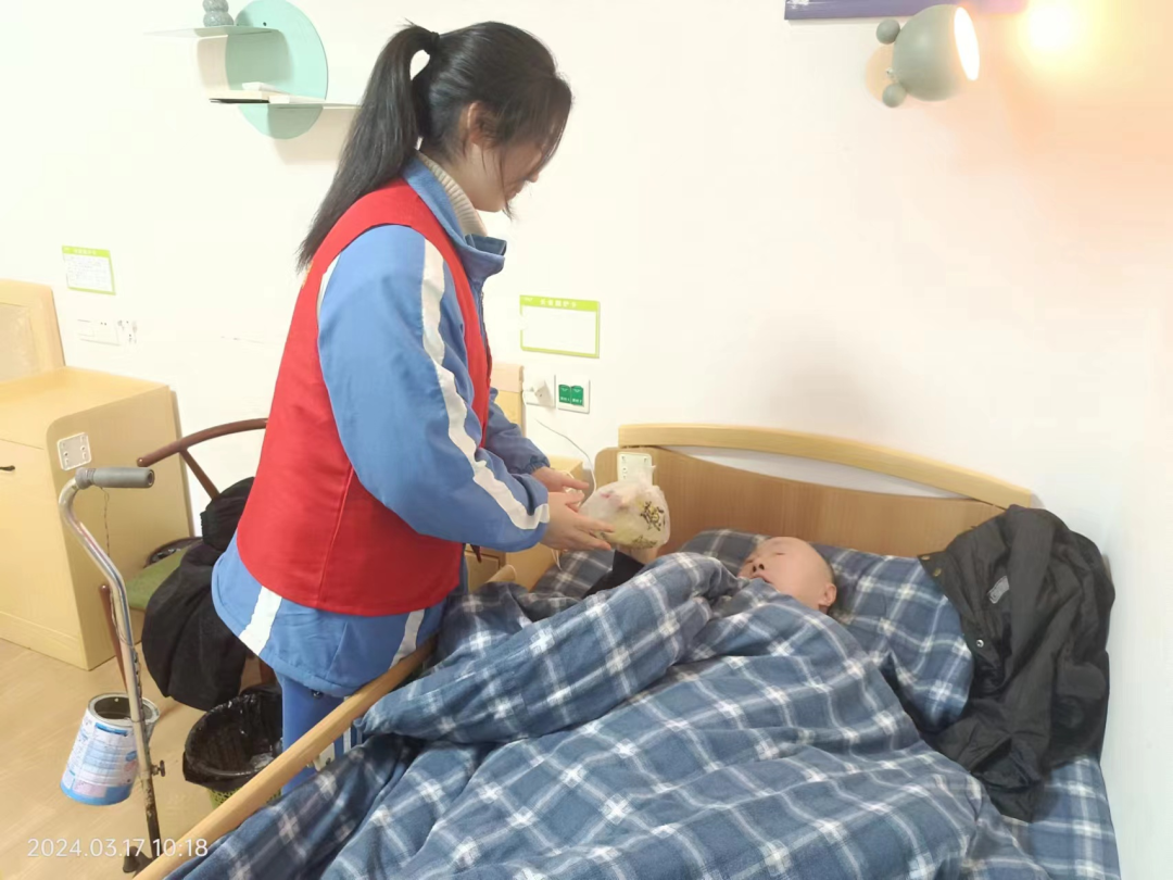 本次活動(dòng)是由同學(xué)們自己編排并自己主持的,明亮的多功能廳里同學(xué)們首先準(zhǔn)備的是歌曲獨(dú)唱,悠揚(yáng)的旋律與同學(xué)動(dòng)聽的歌聲,逗得爺爺奶奶們滿面笑容,掌聲連連。接下來(lái)是聽歌猜歌名活動(dòng),窯灣00后明星護(hù)理員小杰為了讓爺爺奶奶們都可以參與進(jìn)來(lái),特意播放了爺爺奶奶們經(jīng)常聽經(jīng)常唱的歌曲。猜對(duì)了的爺爺奶奶都有同學(xué)送上了心意小禮物平安福。壓軸的活動(dòng)是一段三人舞蹈,小姑娘優(yōu)美的身姿贏得了爺爺奶奶很高的贊美,拍手連連。最后同學(xué)們送上真誠(chéng)的祝福,祝愿爺爺奶奶們身體健康順心如意。